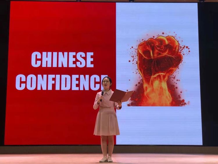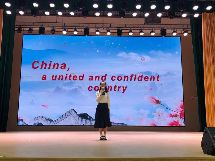 开幕式后,主持人宣布,泰安一中“坚定文化自信 传播中国声音”英语演讲大赛正式开始。选手们按照赛前抽签顺序,依次发表了自己的演讲。