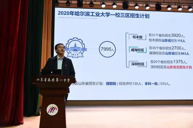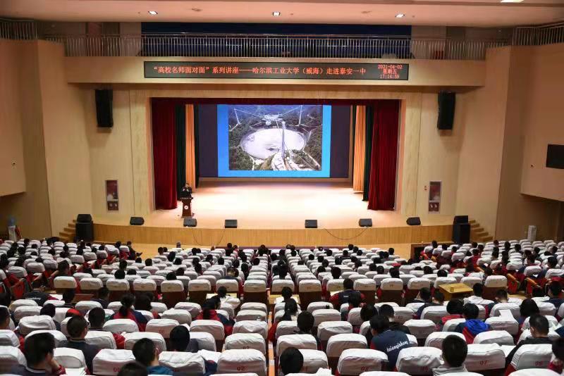 4月2日下午,哈尔滨工业大学(威海)优秀生源基地授牌仪式暨“高校名师面对面”专家报告会在泰安一中新校区举行。哈尔滨工业大学(威海)党委书记张淑娣教授,教务处处长、博师生导师姜永远教授,海洋工程学院院长、博士生导师、中国天眼FAST结构系统副总工程师钱宏亮教授,学校办公室副主任费非,党委工作部副部长岳彩领,招生办公室主任袁伟芝,泰安一中校长李万国,党委书记靳启华,学校党委委员、副校长赵亮,新校区教务处、年级部负责人、班主任代表及400余名师生参加了此次活动。 授牌仪式在新校区科学馆二楼会议室举行。李万国校长首先代表学校向哈尔滨工业大学(威海)表示欢迎,并介绍了泰安一中的历史沿革、学校概况、办学质量等相关信息。张淑娣书记介绍了哈工大威海校区的办学历史和学校情况,对泰安一中每年为学校输送大量优秀毕业生表示感谢。随后张书记为泰安一中授牌。双方还就高校招生、专业设置等方面事项进行了深入座谈,期待进一步加强合作交流。 授牌仪式结束后,哈尔滨工业大学(威海)的领导和专家来到新校区小剧场,为400余名师生作了精彩的专题报告。张淑娣书记介绍了哈工大威海校区的办学特色、办学理念及丰硕的办学成果;姜永远处长对相关招生政策进行了解读;钱宏亮院长作了题为《500米口径球面射电望远镜结构关键技术研究》的学术报告,通过大量的图片视屏展示和深入浅出的讲解,让同学们生动形象地了解了射电望远镜及其工作原理,也深深感受到了钱院长求真务实、开拓创新的科学精神。全体同学纷纷表示,将秉持科学精神,树立远大目标,坚定学习信念,勇攀科技高峰,为中华民族的伟大复兴贡献青春、智慧和力量。 哈尔滨工业大学(威海)成立于1985年,是哈尔滨工业大学“一校三区”办学格局中的重要组成部分,学校同属于国家985、211工程和双一流大学,是C9联盟和卓越大学联盟重要成员之一,毕业后由哈工大颁发统一的毕业证书和学位证书。 2018年以来,我校共有18名同学被哈工大校本部录取,44名同学被威海分校录取。此次哈尔滨工业大学(威海)授予泰安一中优秀生源基地,是对泰安一中办学质量的信任和肯定。泰安一中将以此次优秀生源基地授牌为契机,进一步加强和密切与哈尔滨工业大学(威海)等众多高校的深入合作,坚持推进素质教育,持续提升办学质量,为高校输送更多更好的优秀人才。