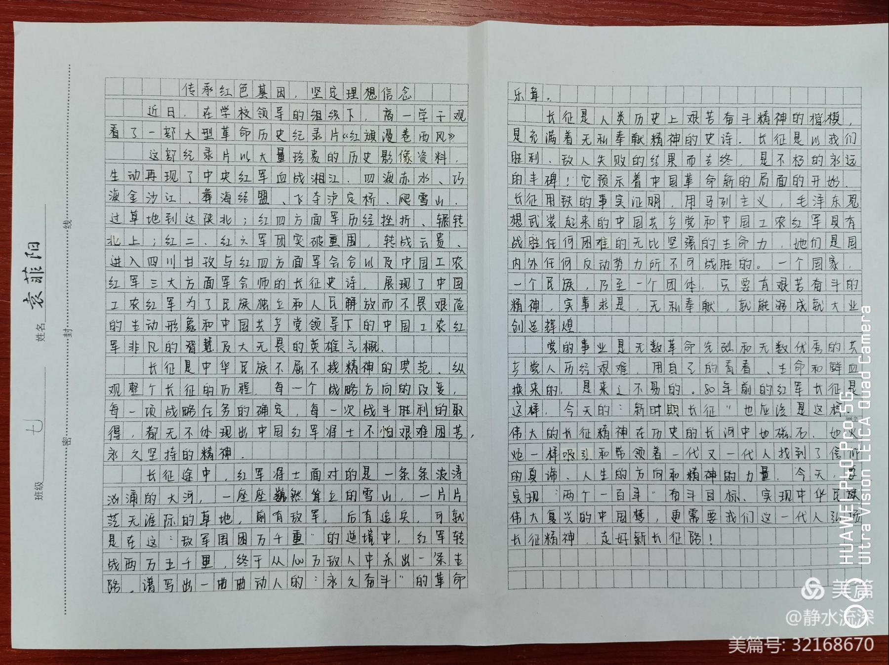同学们被革命先辈的精神感染,观影认真、投入。 ![]() 《红旗漫卷西风》主要展现了中央红军血战湘江、四渡赤水、巧渡金沙江、爬雪山、过草地到达陕北;红四方面军长征时历经挫折,辗转北上;红二、六军团突破重围,转战云贵、进入四川甘孜与红四方面军会合等伟大历程。 ![]() ![]() 活动结束后,同学们互相交流分享观影体验,纷纷用文章写下自己的感悟,表达了对红军长征精神的由衷敬仰和对党奋斗历程的热情颂扬,并表示要用长征精神激励指导自己的学习和生活。