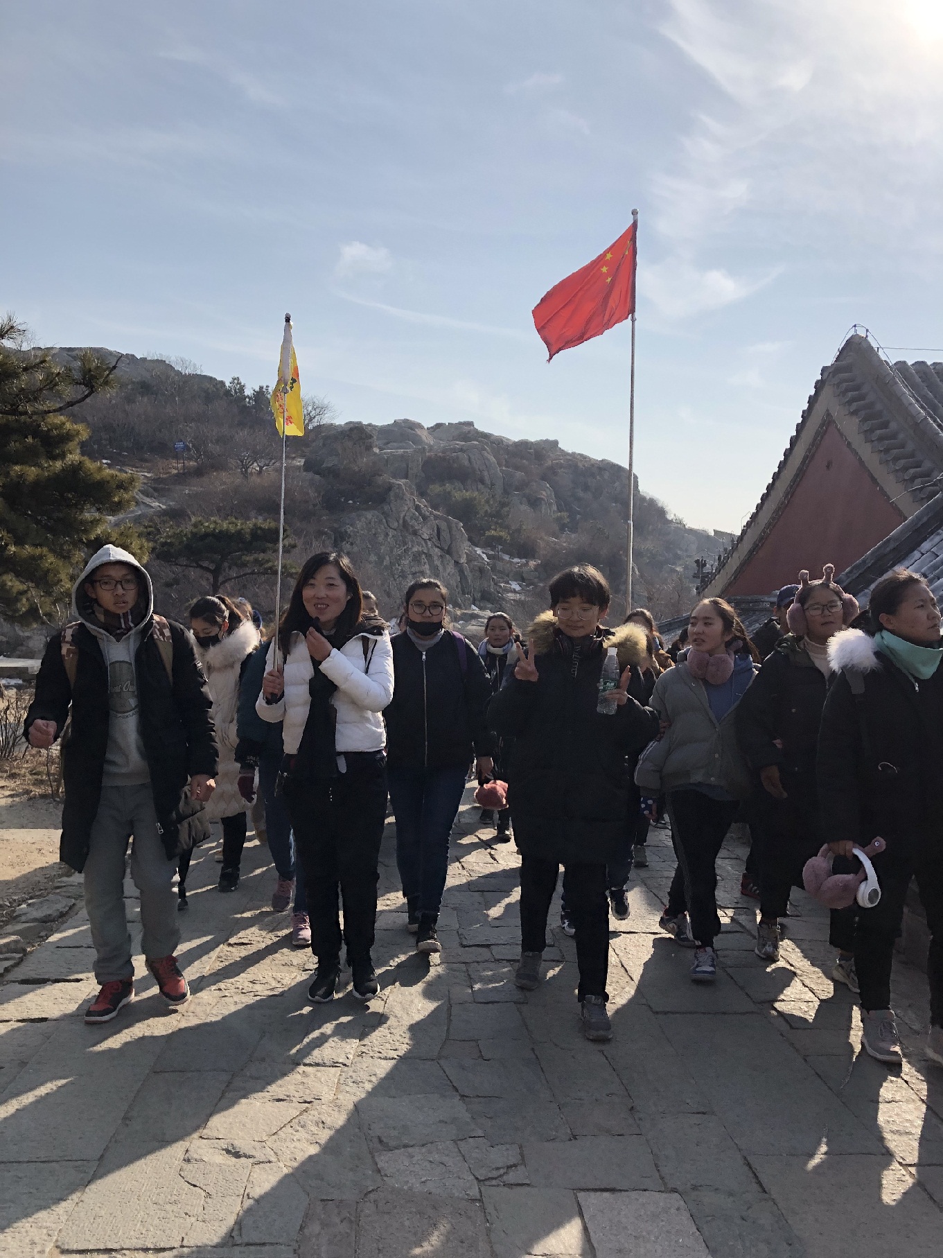 ![]() (同学们在中天门合影留念) 经过中天门后,同学们继续攀登,随着行程的推进,同学们终于到达了此次泰山攀爬最困难最具挑战性的地方——十八盘。十八盘是泰山登山盘路中最险要的一段,共有石阶1630余级,是泰山的主要标志之一。此处两山崖壁如削去了一块,陡峭的盘路镶嵌其中,远远望去,恰似天门云梯。泰山之雄伟,尽在十八盘,泰山之壮美,尽在登攀中!同学们互相搀扶,互帮互助,手脚并用,顺利的征服了这一奇观。 ![]() (同学们跟随导游向玉皇顶前进) 经过十八盘,抵达南天门后,同学们接着有序的进入景区餐厅品尝丰盛的午餐。用餐结束稍作休息后,同学们便跟随导游讲解向此次泰山攀登的最高峰——玉皇顶前进。 ![]() (同学老师们在大观峰前合影留念) 同学们终于到达了此次泰山的最高点——玉皇顶。玉皇顶,是五岳之首泰山的主峰之巅,玉皇顶旧称太平顶,又名天柱峰,始建年代久远无考,明成化年间重修。神龛上匾额题“柴望遗风”,说明远古帝王曾于此燔柴祭天,望祀山川诸神。成功登顶泰山的同学们非常兴奋, 认真聆听导游讲解之余也不忘进行合影留念。 ![]() (成功登上玉皇顶的同学们) 同学们从玉皇顶下来经过并参观了泰山非常著名的景点——大观峰。大观峰是山东泰安的著名风景名胜之一,布满了历代题勒,其中最著名的是唐玄宗于开元十三年(725)登封泰山时御制御书的《纪泰山铭》,俗称“唐摩崖”。明代文学家王世贞评价说:“穹崖造天铭书,若鸾飞舞于烟云之表,为之色飞。”师生在此许下了2019年的庄重的誓言“2019,一起拼搏,一起奋斗!” ![]() (同学老师们在大观峰前合影留念) 随着同学们陆续下山,泰安一中西藏生新年登泰山研学行的活动也渐渐落下了帷幕。意犹未尽兴奋之余,同学们纷纷表示度过了美好而难忘的一天。他们用用顽强的意志登上了泰山之巅,欣赏了泰山的雄伟和壮丽,表达了对伟大祖国的深挚的热爱,并在登山途中相互扶持,增强了团队意识和集体主义观念,磨炼出战胜困难的决心和意志。对120名西藏生而言,这不仅仅是一次旅行,更是一次不平凡的体验与成长,是人生旅途中意义非凡的一笔。 |