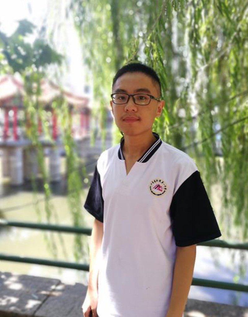 2016级14班,叶子豪。性格开朗,酷爱数学竞赛,是一名“数学阿甘”。在竞赛学习上投入了大量精力,并在竞赛考场上摘金夺银,是2016级我市唯一一个在高二荣获数学竞赛全国一等奖的学生。并因此获得2018年清华大学数学夏令营资格。