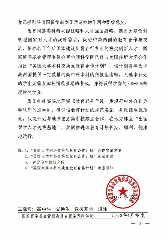 选拔高中生参加“美国大学本科交换生教育合作计划”的通知 |
