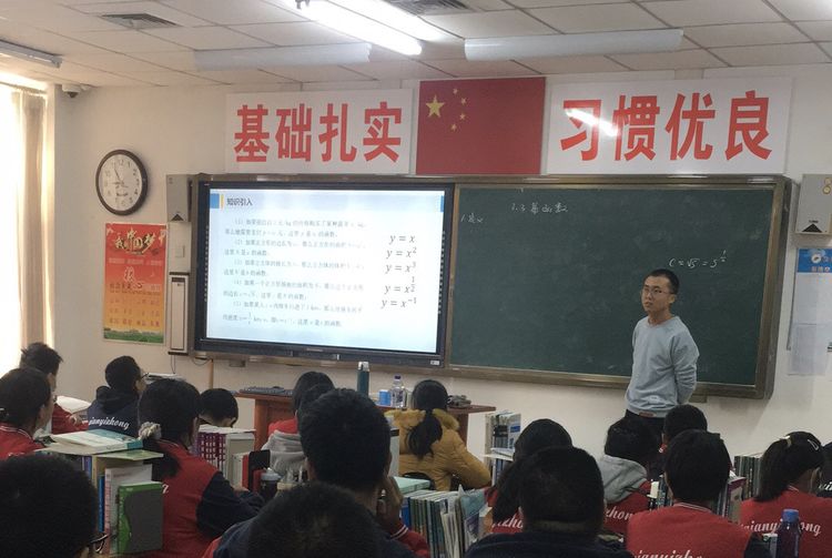 ![]() ![]() 朱璇老师讲授的《指数函数及其性质》,以新冠病毒的感染问题引入新课,多个函数实例归纳总结得出指数函数定义,并讨论探究定义中的关键词,学生通过画图,观察归纳总结出性质,整节课以学生为主体,充分调动学生的积极性、主动性。 ![]() ![]() ![]() 罗圣帅老师讲授的《幂函数》,以励志数学公式激发学生学习热情,通过生活实例导入本节学习内容,授课过程中从特殊到一般进行类比、数形结合思想教师引导,学生自主探究感受抽象函数的魅力,使抽象的内容通过图象变得形象具体。本节通过幂函数的学习,以点带面为学生自主学习新函数起到重要的示范作用。 ![]() ![]() ![]() 王乾乾老师的这堂课在充分分析教材和学情的基础上,设立了合理的教学目标及教学内容,突出了重点,突破了难点既有助于学生形成了幂函数的完整知识结构,又引导学生通过类比的方法再次体验了函数的一般研究方法,将数形结合思想方法贯穿于整节课的教学,有助于学生学科核心素养的形成,在本节课中,教师引导学生发现问题,引导他们找到解决问题的途径,获得学习体验。 ![]() ![]() ![]() ![]() 课后,各备课组充分发挥团队精神,集思广益,坦诚交流,及时讨论、反思、总结和引领,群策群力,共享课堂教学智慧,落实了教学实践与最新教育理念的结合。