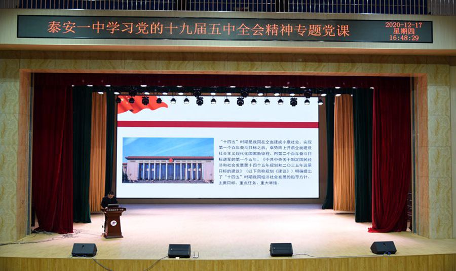 为深入学习习近平总书记在党的十九届五中全会上的重要讲话和全会文件精神,12月17日,学校党委书记靳启华为新校区全体党员干部上专题党课。 靳书记以“贯彻新理念、落实新部署,全面建设社会主义现代化国家”为题,宣讲了十九届五中全会召开的背景、主要成果和重大意义,从基本原则和方法论、贯彻新发展理念、统筹安全和发展等三个方面,对党的十九届五中全会精神进行了全面系统深入的讲解,为全体党员干部上了一次主题鲜明,重点突出,内容丰富,阐述透彻的党课。 靳书记要求,全体党员干部要认真学习贯彻党的十九届五中全会精神,自觉把思想和行动统一到全会精神上来,把学习的成果转化成为推动我校教育教学工作发展的强大动力,推动全市高质量教育体系建设,为全面实现社会主义现代化努力奋斗。
