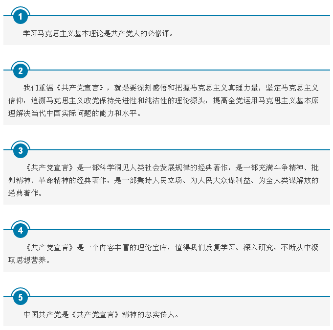 中共中央政治局4月23日下午就《共产党宣言》及其时代意义举行第五次集体学习。中共中央总书记习近平在主持学习时强调,学习马克思主义基本理论是共产党人的必修课。