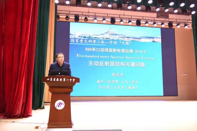 4月2日下午,哈尔滨工业大学(威海)优秀生源基地授牌仪式暨“高校名师面对面”专家报告会在泰安一中新校区举行。哈尔滨工业大学(威海)党委书记张淑娣教授,教务处处长、博师生导师姜永远教授,海洋工程学院院长、博士生导师、中国天眼FAST结构系统副总工程师钱宏亮教授,学校办公室副主任费非,党委工作部副部长岳彩领,招生办公室主任袁伟芝,泰安一中校长李万国,党委书记靳启华,学校党委委员、副校长赵亮,新校区教务处、年级部负责人、班主任代表及400余名师生参加了此次活动。 授牌仪式在新校区科学馆二楼会议室举行。李万国校长首先代表学校向哈尔滨工业大学(威海)表示欢迎,并介绍了泰安一中的历史沿革、学校概况、办学质量等相关信息。张淑娣书记介绍了哈工大威海校区的办学历史和学校情况,对泰安一中每年为学校输送大量优秀毕业生表示感谢。随后张书记为泰安一中授牌。双方还就高校招生、专业设置等方面事项进行了深入座谈,期待进一步加强合作交流。 授牌仪式结束后,哈尔滨工业大学(威海)的领导和专家来到新校区小剧场,为400余名师生作了精彩的专题报告。张淑娣书记介绍了哈工大威海校区的办学特色、办学理念及丰硕的办学成果;姜永远处长对相关招生政策进行了解读;钱宏亮院长作了题为《500米口径球面射电望远镜结构关键技术研究》的学术报告,通过大量的图片视屏展示和深入浅出的讲解,让同学们生动形象地了解了射电望远镜及其工作原理,也深深感受到了钱院长求真务实、开拓创新的科学精神。全体同学纷纷表示,将秉持科学精神,树立远大目标,坚定学习信念,勇攀科技高峰,为中华民族的伟大复兴贡献青春、智慧和力量。 哈尔滨工业大学(威海)成立于1985年,是哈尔滨工业大学“一校三区”办学格局中的重要组成部分,学校同属于国家985、211工程和双一流大学,是C9联盟和卓越大学联盟重要成员之一,毕业后由哈工大颁发统一的毕业证书和学位证书。 2018年以来,我校共有18名同学被哈工大校本部录取,44名同学被威海分校录取。此次哈尔滨工业大学(威海)授予泰安一中优秀生源基地,是对泰安一中办学质量的信任和肯定。泰安一中将以此次优秀生源基地授牌为契机,进一步加强和密切与哈尔滨工业大学(威海)等众多高校的深入合作,坚持推进素质教育,持续提升办学质量,为高校输送更多更好的优秀人才。