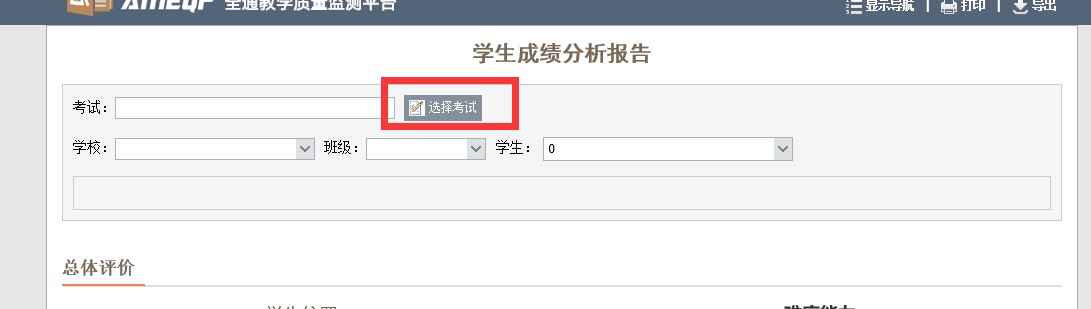 3、选择左侧统计分析-数据分析中心,点击学生成绩分析报告。 4、点击选择考试