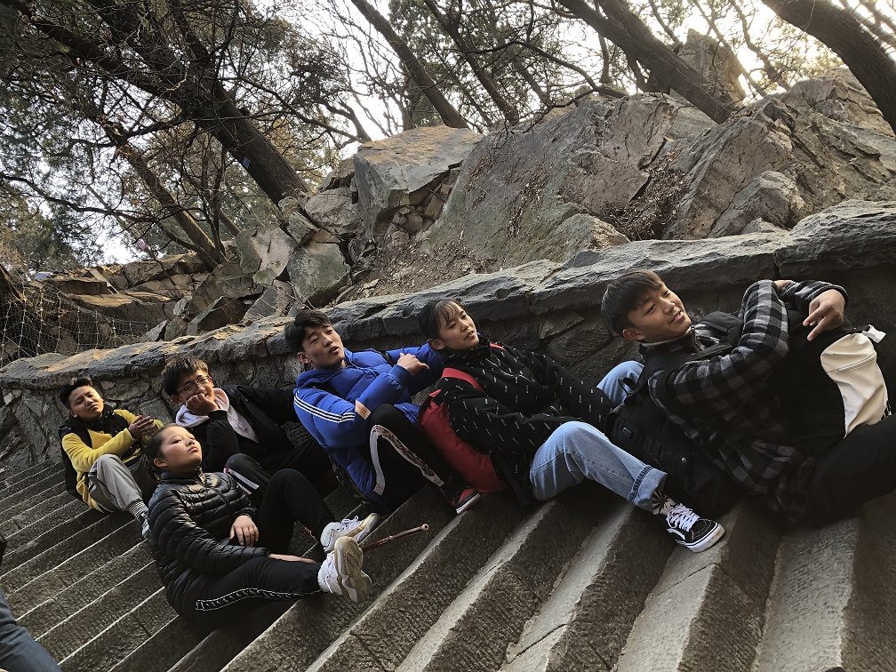 ![]() (同学们在中天门合影留念) 经过中天门后,同学们继续攀登,随着行程的推进,同学们终于到达了此次泰山攀爬最困难最具挑战性的地方——十八盘。十八盘是泰山登山盘路中最险要的一段,共有石阶1630余级,是泰山的主要标志之一。此处两山崖壁如削去了一块,陡峭的盘路镶嵌其中,远远望去,恰似天门云梯。泰山之雄伟,尽在十八盘,泰山之壮美,尽在登攀中!同学们互相搀扶,互帮互助,手脚并用,顺利的征服了这一奇观。 ![]() (同学们跟随导游向玉皇顶前进) 经过十八盘,抵达南天门后,同学们接着有序的进入景区餐厅品尝丰盛的午餐。用餐结束稍作休息后,同学们便跟随导游讲解向此次泰山攀登的最高峰——玉皇顶前进。 ![]() (同学老师们在大观峰前合影留念) 同学们终于到达了此次泰山的最高点——玉皇顶。玉皇顶,是五岳之首泰山的主峰之巅,玉皇顶旧称太平顶,又名天柱峰,始建年代久远无考,明成化年间重修。神龛上匾额题“柴望遗风”,说明远古帝王曾于此燔柴祭天,望祀山川诸神。成功登顶泰山的同学们非常兴奋, 认真聆听导游讲解之余也不忘进行合影留念。 ![]() (成功登上玉皇顶的同学们) 同学们从玉皇顶下来经过并参观了泰山非常著名的景点——大观峰。大观峰是山东泰安的著名风景名胜之一,布满了历代题勒,其中最著名的是唐玄宗于开元十三年(725)登封泰山时御制御书的《纪泰山铭》,俗称“唐摩崖”。明代文学家王世贞评价说:“穹崖造天铭书,若鸾飞舞于烟云之表,为之色飞。”师生在此许下了2019年的庄重的誓言“2019,一起拼搏,一起奋斗!” ![]() (同学老师们在大观峰前合影留念) 随着同学们陆续下山,泰安一中西藏生新年登泰山研学行的活动也渐渐落下了帷幕。意犹未尽兴奋之余,同学们纷纷表示度过了美好而难忘的一天。他们用用顽强的意志登上了泰山之巅,欣赏了泰山的雄伟和壮丽,表达了对伟大祖国的深挚的热爱,并在登山途中相互扶持,增强了团队意识和集体主义观念,磨炼出战胜困难的决心和意志。对120名西藏生而言,这不仅仅是一次旅行,更是一次不平凡的体验与成长,是人生旅途中意义非凡的一笔。 |