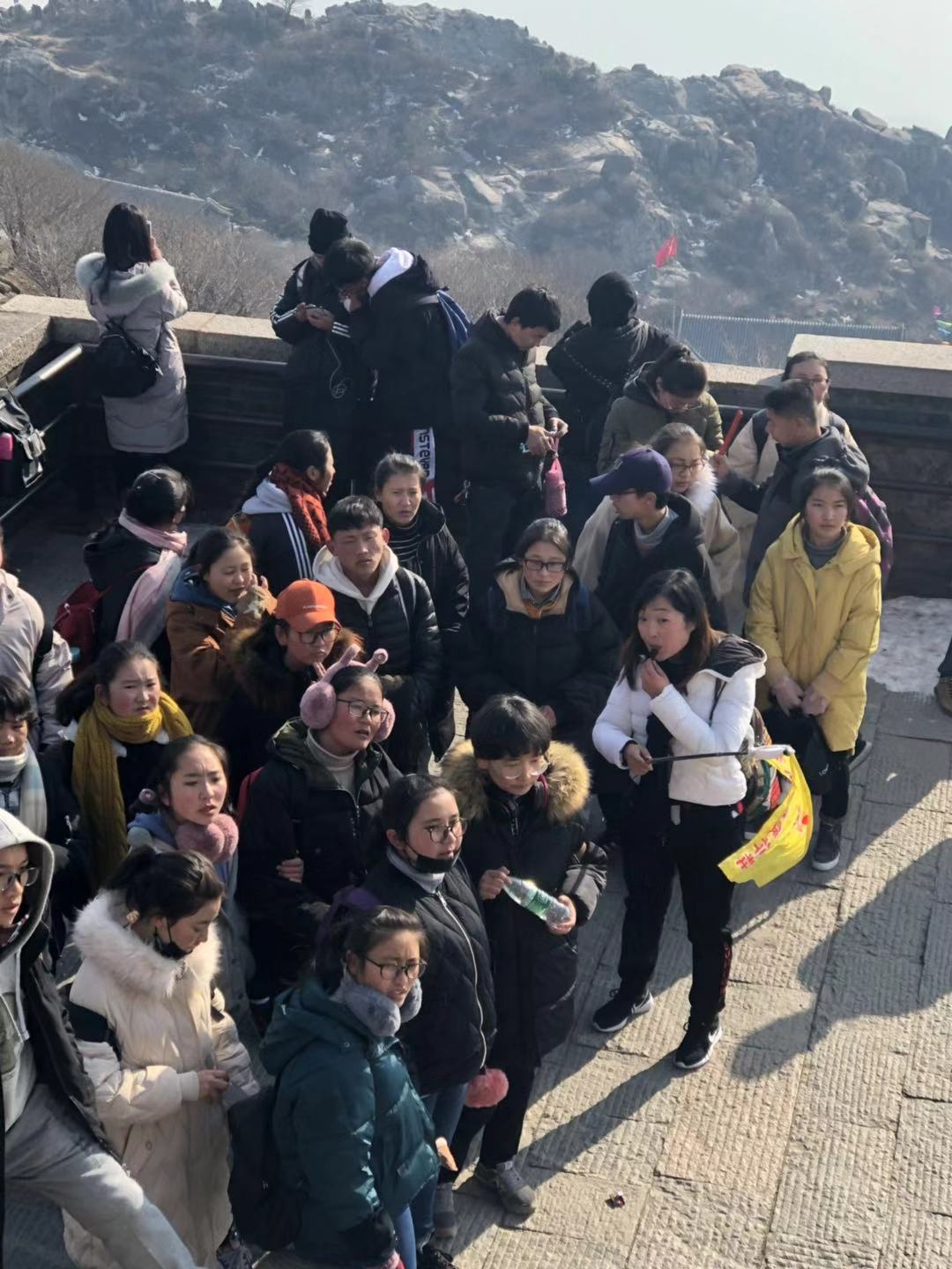 1月1日早上,泰安一中西藏生新一轮的“一山一水一圣人”研学活动——新年登泰山励志行动——正式起航。 本次行程为期一天,120名西藏生迎着新年的第一缕阳光,徒步进行登山,发扬吃苦耐劳、团结协作的精神,了解泰山历史,学习泰山文化。 泰山又名岱山、岱宗,位于山东省中部,隶属于泰安市,绵亘于泰安、济南、淄博三市之间,总面积24200公顷。主峰玉皇顶海拔1545米,气势雄伟磅礴,有“五岳之首”、“五岳之长”、五岳之尊、“天下第一山”之称。是世界自然与文化遗产,世界地质公园,国家AAAAA级旅游景区。它是中华民族的象征,是东方文化的缩影,是中华民族精神的家园。 对于此次泰山之行,孩子们都兴奋极了,老师们也充满了期待。进入景区大门万仙楼处,老师和同学们进行了合影留念,为此次美好行程留下纪念。 ![]() 景区前合影留念 随着泰山行程的开始,同学们很快到达了第一站——斗母宫。斗母宫,是泰山景区中最为幽静的所在,古名“龙泉观”,它临溪而建,分为北、中、南三院,山门面西。钟鼓二楼直接建于宫门两旁并与山门连在一起,来到斗母宫,北看天门依然高挂,遥遥不可及;南望来路,一些低峰矮山却尽在脚下了。兴奋之余的同学们也在此进行了合影留念。 ![]() 同学们在斗母宫前合影留念 参观完斗母宫后,同学们又继续开始攀登泰山,此时距离泰山的中天门也已行程过半。快看!中间那位穿蓝上衣的同学,在背着自己书包的同时,还在为其他略显疲惫的同学拿起了书包跨在身上继续前行,这种助人为乐的精神值得我们学习,在这寒冷的冬天里送来了丝丝温暖。