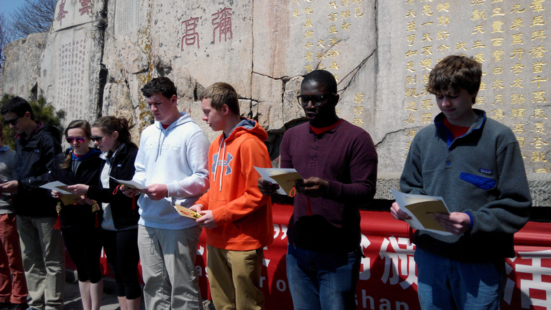 按照2005年我校与康州姊妹学校签订的教育交流合作协议,2015年2月19日—3月5日我校师生对康州姊妹学校格拉斯托博瑞高中进行了第三次访问。4月8日---14日,康州姊妹学校师生一行13人对我校进行了第四次互访。访问期间,按照我校国际部预先制定的活动方案,先后进行了学校交流、家庭交流和文化交流三项交流活动,学校交流是此次交流访问活动的重头戏。 在学校交流期间,美国师生通过深入班级听课和与我校师生互动,了解了我校学生的学习和生活状况,同时对我校的教学和管理情况也有了初步的了解。在互动活动中,姊妹学校学生的汉语水平和我校学生的英语水平都给双方留下了极为深刻的印象,尤其是姊妹学校学生Ray流利的汉语常常博得我校师生的掌声和喝彩。此外,他们还参加了丰富多彩的活动:乒乓球、羽毛球、篮球、踢毽子等多样的体育活动,尤其是篮球友谊赛更是加深了姊妹学校学生之间的友谊和了解,密切了彼此的关系。除此之外,我校还安排了包水饺活动,姊妹学校师生、我校接待学生和家长以及餐厅的工作人员经过一个小时的努力,最终品尝到了自己的劳动成果,但最重要的是姊妹学校学生体验了中国的文化,这也是本次访问活动的另一主旨。 在家庭活动中,我校所有的接待家庭都尽心尽力、无微不至地照顾着姊妹学校的师生,安排了丰富多彩的活动,体验着泰安本土的文化、地理和历史以及风土人情,同时还为他们洗衣服,赠送精美的礼物等。最头疼的是,个别姊妹学校学生极为挑食,我校接待家庭便千方百计地为他们调整食谱,颇费心思。在此,向他们表示崇高的敬意和衷心的感谢!同时,各位家长通过与姊妹学校学生的接触和交流,对美国学生的独立和自律留下了极为深刻的印象。 文化交流活动主要包括游览泰山、岱庙和三孔(孔府、孔庙、孔林)。通过游览,姊妹学校学生对中国古老的国度和文明有了具象的了解和认识。他们感慨中国历史的悠久和文化的博大精深,更慨叹中华民族的智慧与自强不息! 总之,为期近一周的教育交流访问活动既加深了姊妹学校师生之间友谊,又通过交流和互动,让姊妹学校师生对中国的教育、文化,古老的文明和地理以及风土人情等有了更深刻的认识和了解,圆满完成了交流访问任务,双方均受益匪浅。 此次交流活动还达成了三项初步合作意向: 1. 双方学生进行常规skype(视频聊天),以此加深了解,提高英语和汉语的口语水平。 2. 双方学生通过E-mail互相致信,一是加深感情,二是通过互批互改提高彼此的汉语和英语写作水平。 3. 建立空中课堂,通过视频,聆听彼此的CI课(时事评论课),观后提出改进的意见。