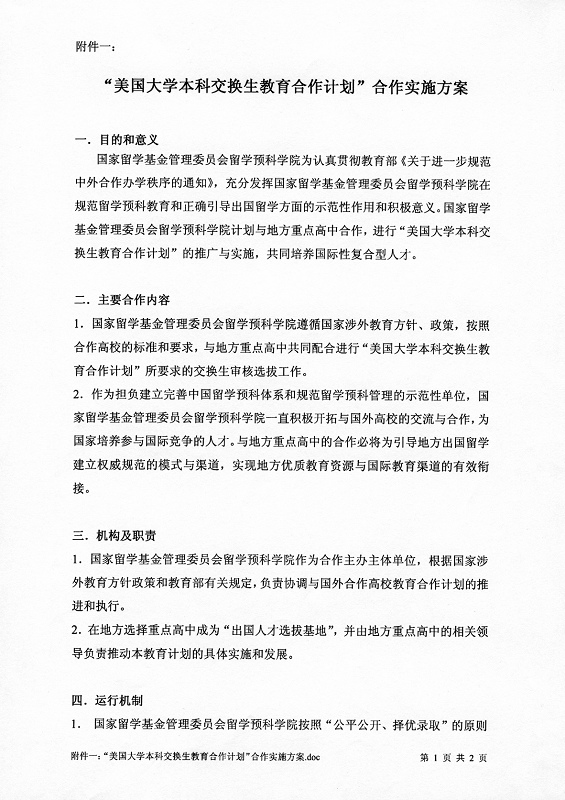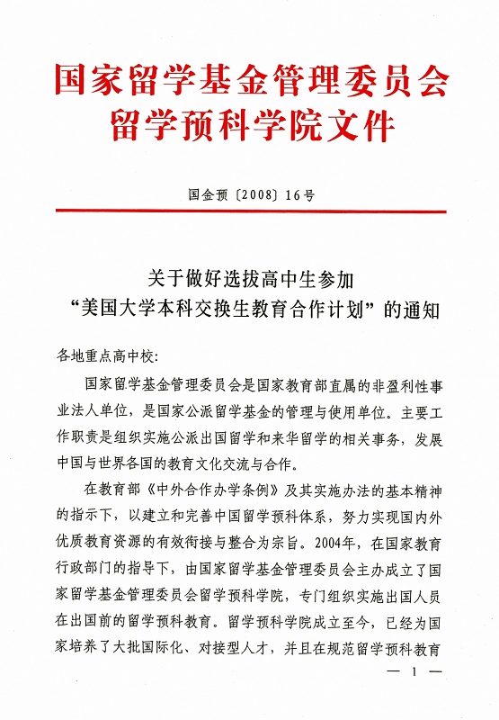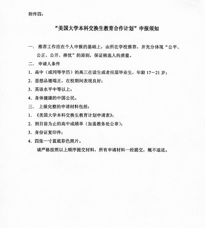 选拔高中生参加“美国大学本科交换生教育合作计划”的通知 |