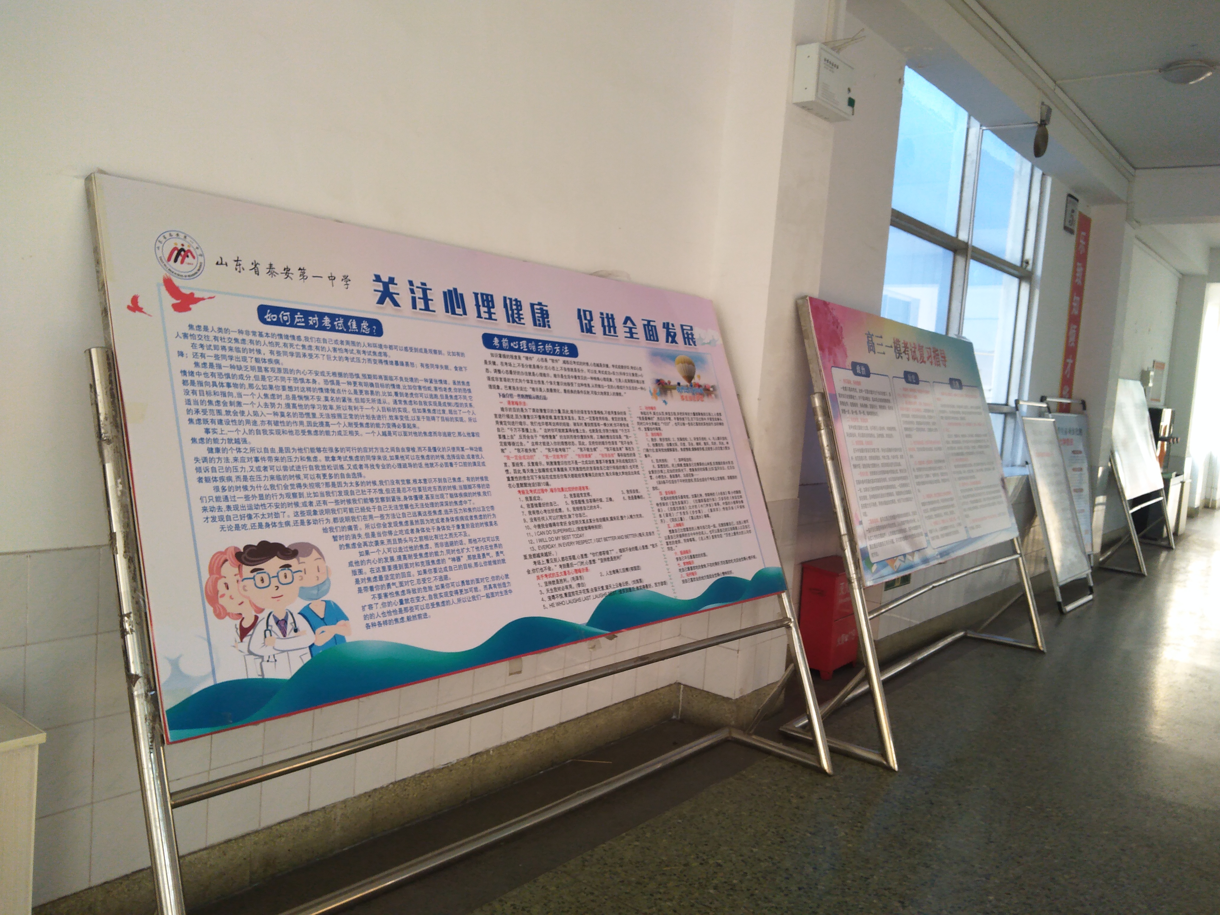 为关心全体学生的心理健康,缓解学生学习压力,2022年2月24日,泰安一中心理咨询中心创新宣传方式,采用展板宣传的方式,向学生科普心理健康知识,提高学生的心理保健能力。